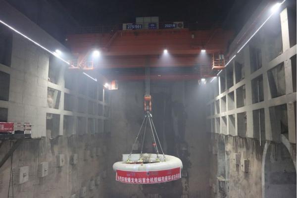 9點41分,蝸殼座環(huán)開始緩慢下降,安全平穩(wěn)坐落至支撐環(huán)楔子板上。參加吊裝人員分工細致,嚴謹操作,各負其責,將支撐環(huán)上的螺栓一個個****地穿入座環(huán)螺栓孔,使其不受到一絲一毫刮碰,然后擰緊戴好螺栓帽,圓滿順利完成吊裝任務。